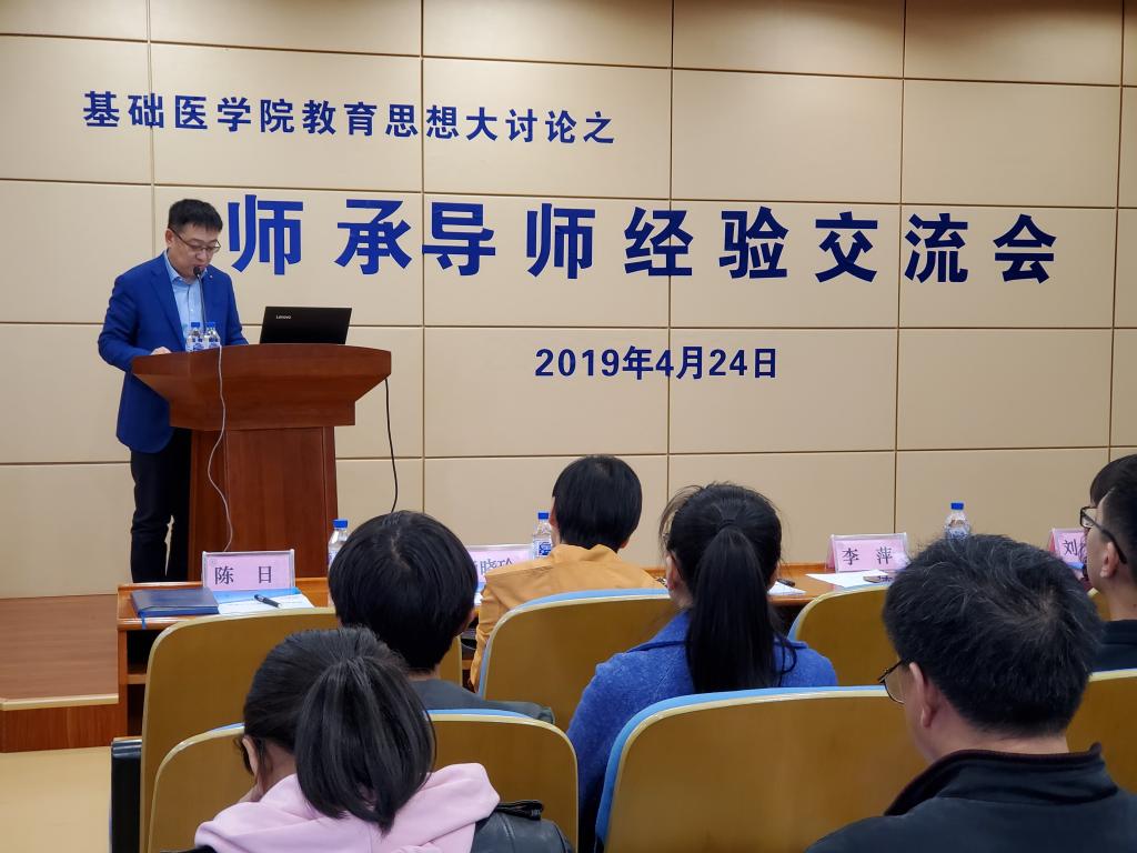 4月24日,YABO鸭脖官网在菊韵报告厅召开教育思想大讨论系列活动之师承导师经验交流会。校长宋柏林,教务处副处长刘杰,YABO鸭脖官网领导班子,各教研室主任,全院教师及部分师承学生参加会议,党委书记陈日主持会议。