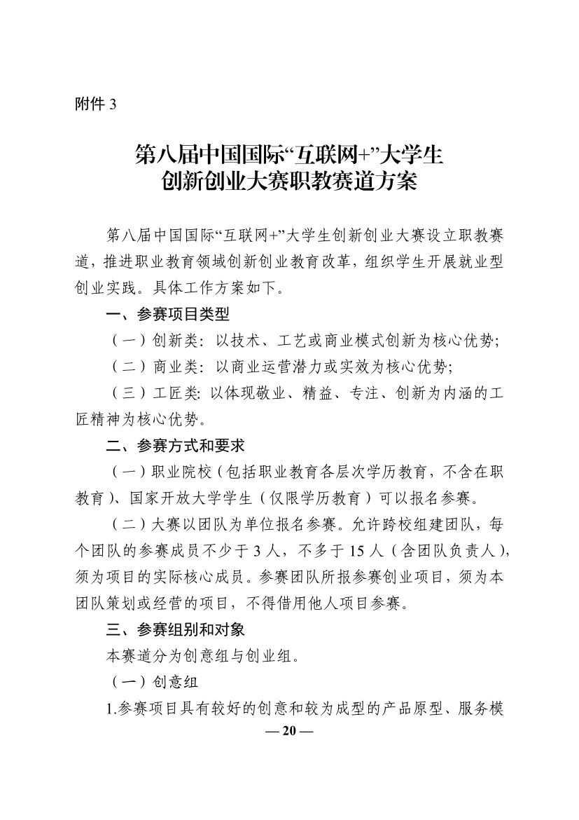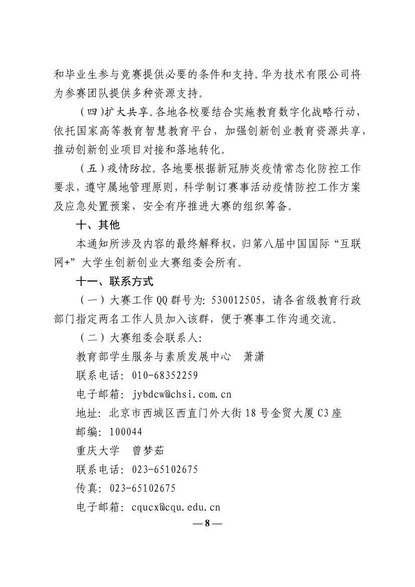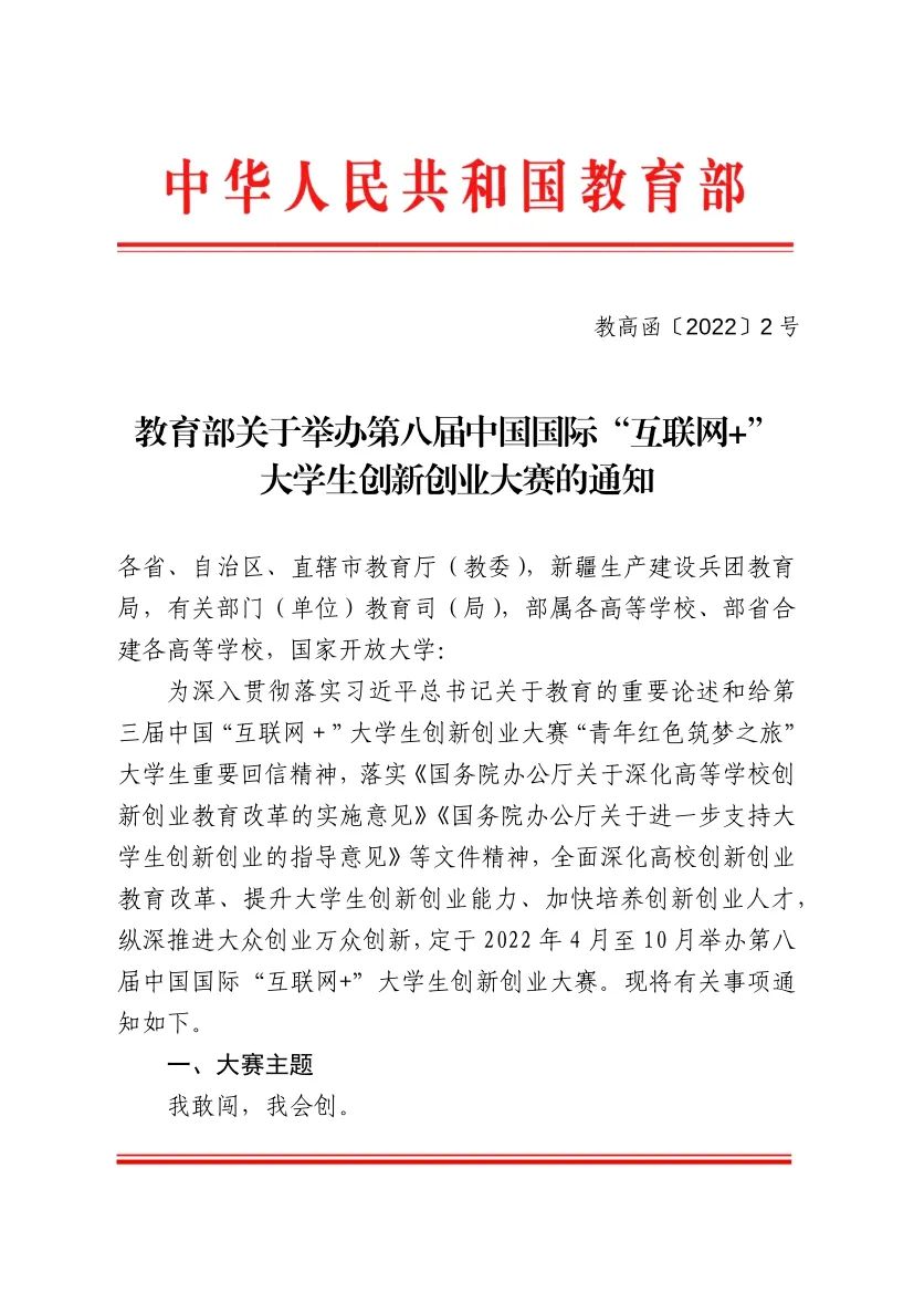 教育部关于举办第八届中国国际“互联网+”大学生创新创业大赛的通知