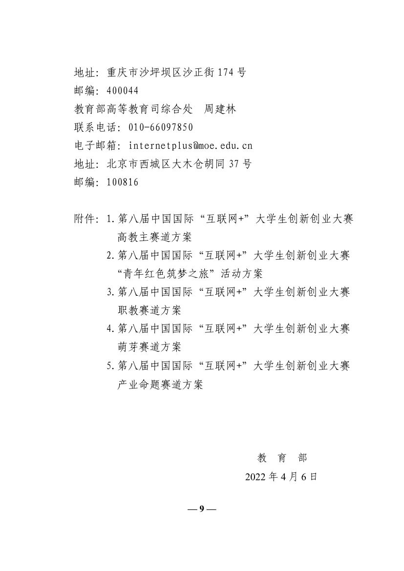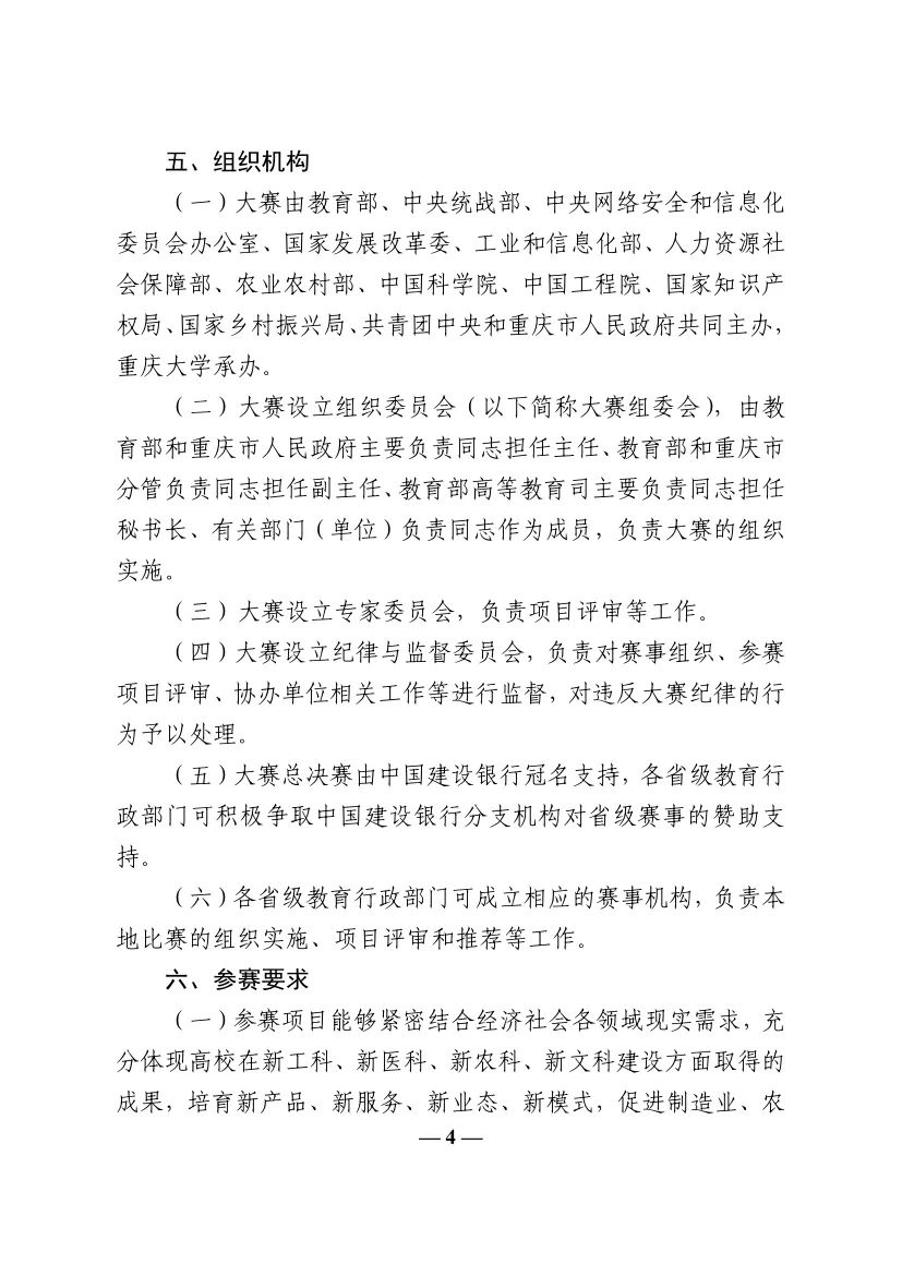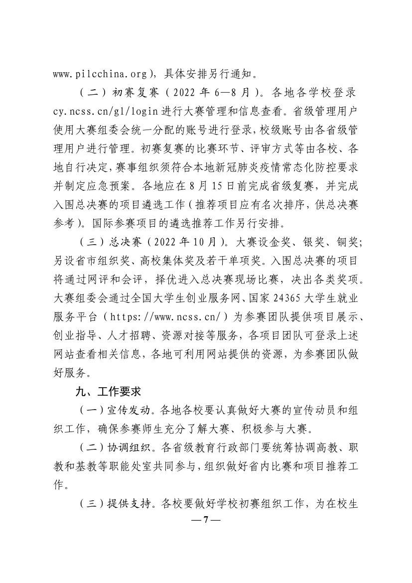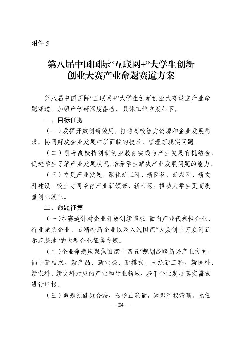 教育部关于举办第八届中国国际“互联网+”大学生创新创业大赛的通知