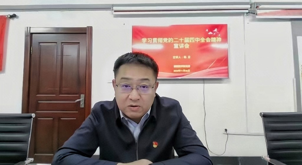 为深入学习贯彻党的二十届四中全会精神,切实把全院师生的思想和行动统一到党中央决策部署上来,YABO鸭脖官网党委于11月26日在办公楼319会议室召开学习贯彻党的二十届四中全会精神专题宣讲会。学院党委书记陈日担任主讲人,全院师生200余人以线上线下相结合的方式参会学习。