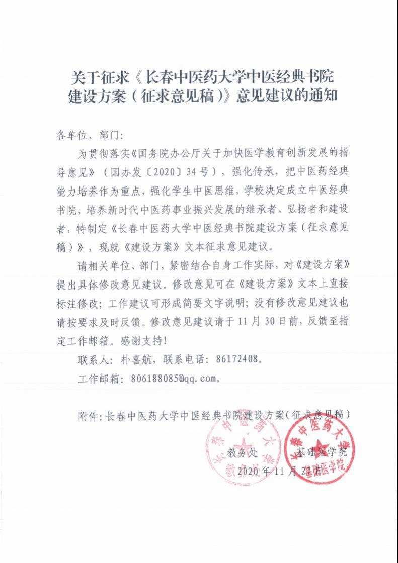 为贯彻落实《国务院办公厅关于加快医学教育创新发展 的指导意见》 ( 国办发〔2020〕 34号),强化传承,把中医 药经典能力培养作为重点,强化学生中医思维,学校决定成 立中医经典书院,培养新时代中医药事业振兴发展的继承 者、弘扬者和建设者,制定如下方案。