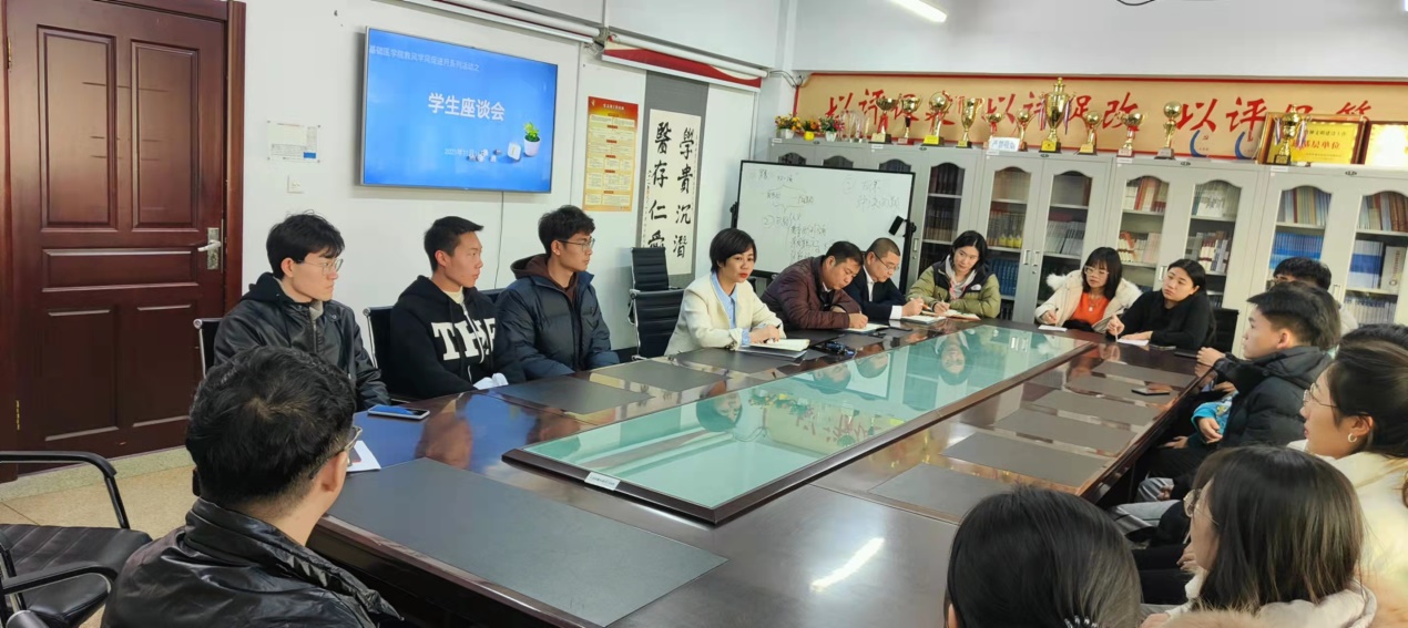 与会人员围绕期中教学检查过程中《中医各家学说》课程的课堂教学秩序问题进行探讨,与会学生就专业年级的心理、学习状况以及上课体会和感想进行发言,并结合实际对教师授课过程中的提出了中肯的想法,座谈会进一步促进教师了解学生学情,使任课教师结合学情进行调整教学设计和内容。